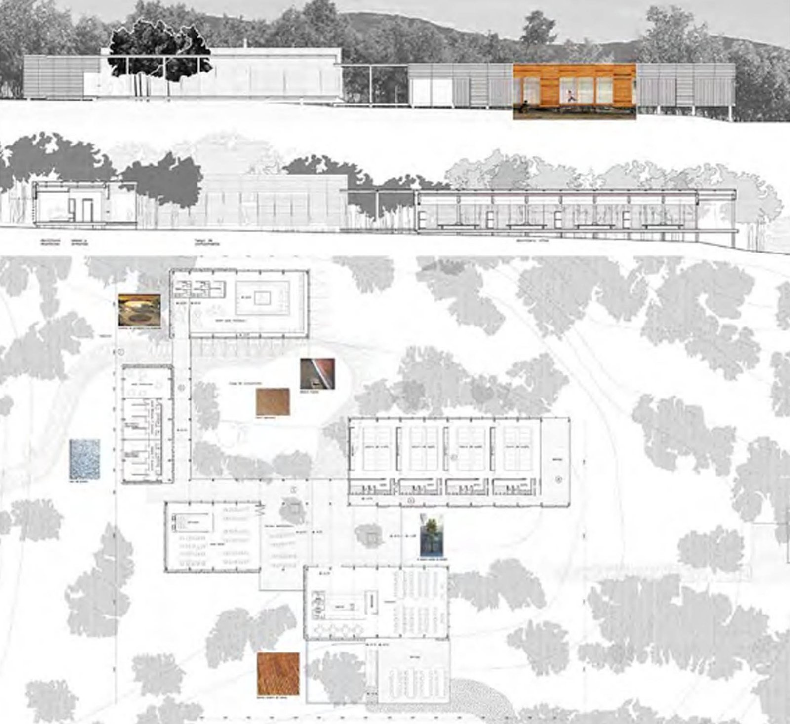 Se ha tratado de respetar al máximo el medio ambiente, creando una arquitectura que sea poco agresiva con este entorno natural y que a la vez cambie con él. Todo nace de un núcleo que al igual que los árboles o plantas, se van disolviendo y apoderando de las zonas que por sus cualidades son más privilegiadas, desplazando la materia y dejando la huella de donde nació todo, el claro en el bosque, el núcleo, el fuego generador, el fuego de campamento.