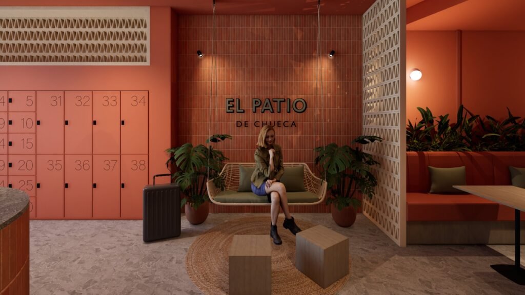 En este proyecto, se Introduce la vida de la Plaza de Pedro Zerolo en el edificio y se saca el máximo provecho a los patios. Convirtiendo los patios en “el alma” del hostel.
